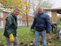 Councillor Ainslie at the St. Mark's United Church helping with daffodil planting