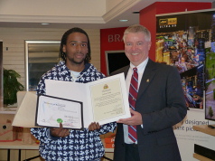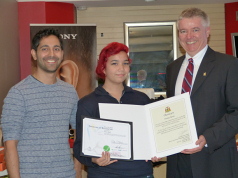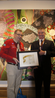 Counciilor Ainslie receiving an award from Scouts Canada |