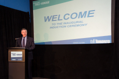 Counciilor Ainslie speaking at the unveiling of Toronto Sports Hall of Honour