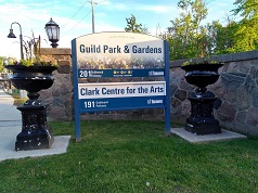 Newly painted and installed sign at the Guild Park and Gardens Clarks Centre for the Arts site. |